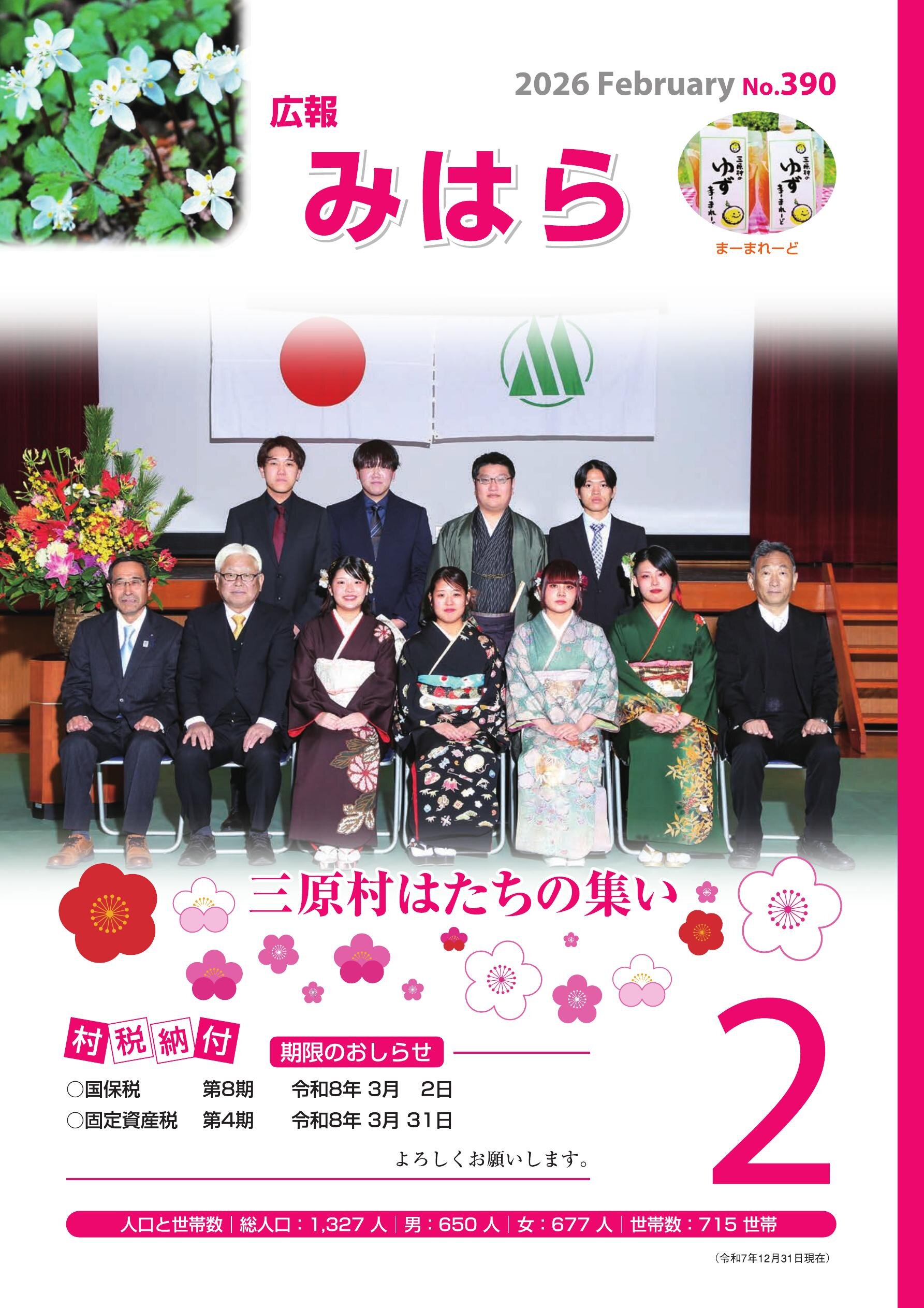 ■議会だより ■新年のごあいさつ 三原村長・議会議長 ■火災 救急は119 ・林野火災注意報・林野火災警報の運用開始