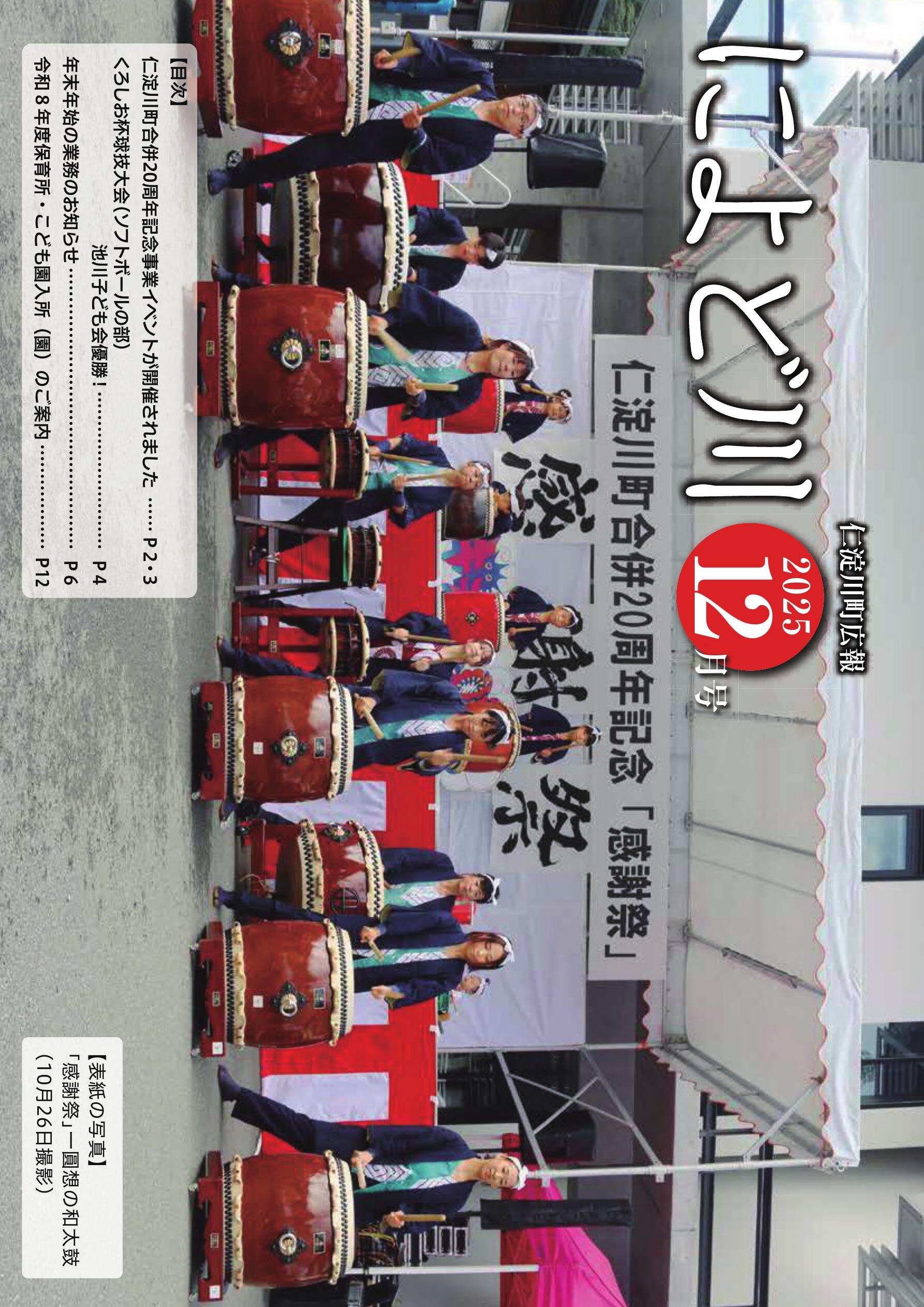 ■表紙:「感謝祭」一圓想の和太鼓 ■仁淀川町合併20周年記念事業イベント開催! ■まちの話題 ・「感謝祭」および「お