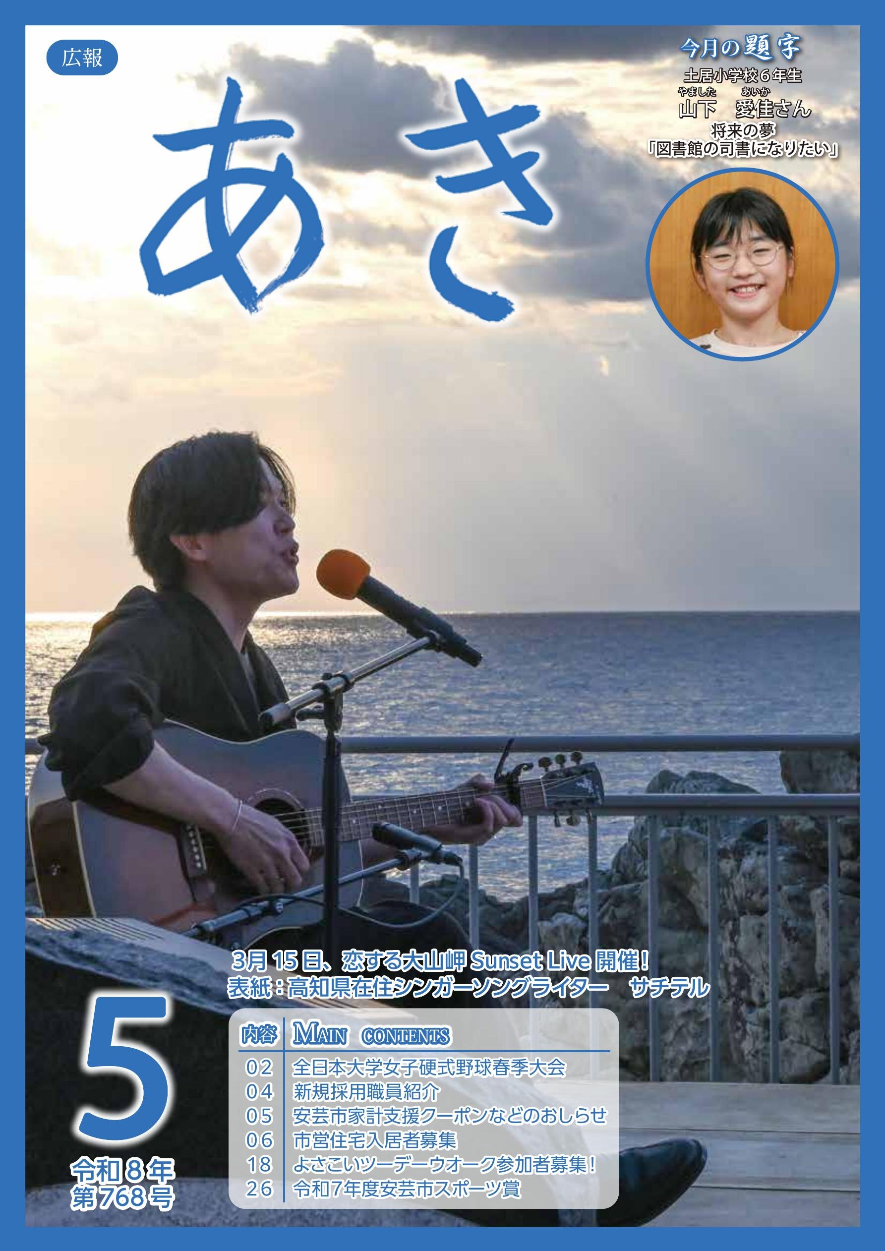 ■全日本大学女子硬式野球春季大会 ■新規採用職員の紹介 ■安芸市家計支援クーポン他 ■市営住宅入居者募集 ■指定管