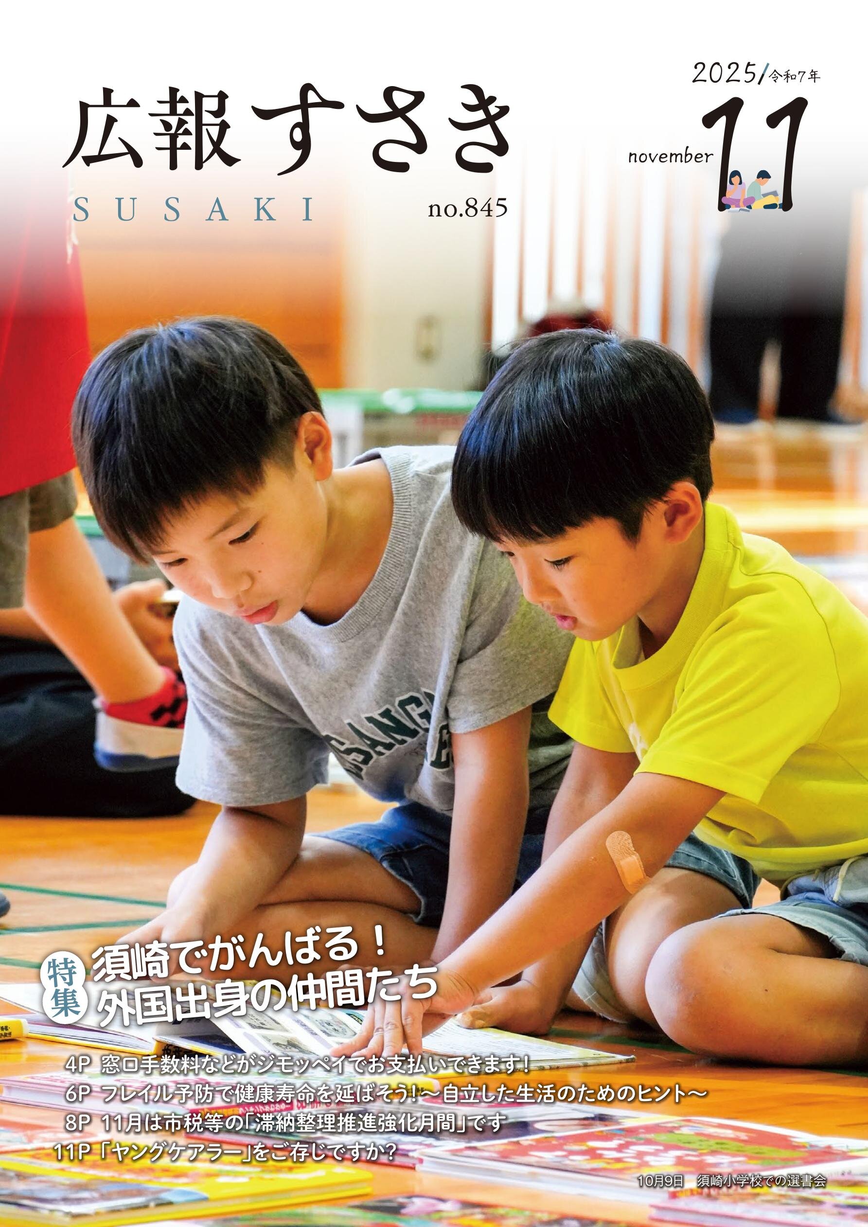 【表紙】須崎小学校での選書会 ■【特集】須崎でがんばる!外国出身の仲間たち ■窓口手数料などがジモッペイでお支払い