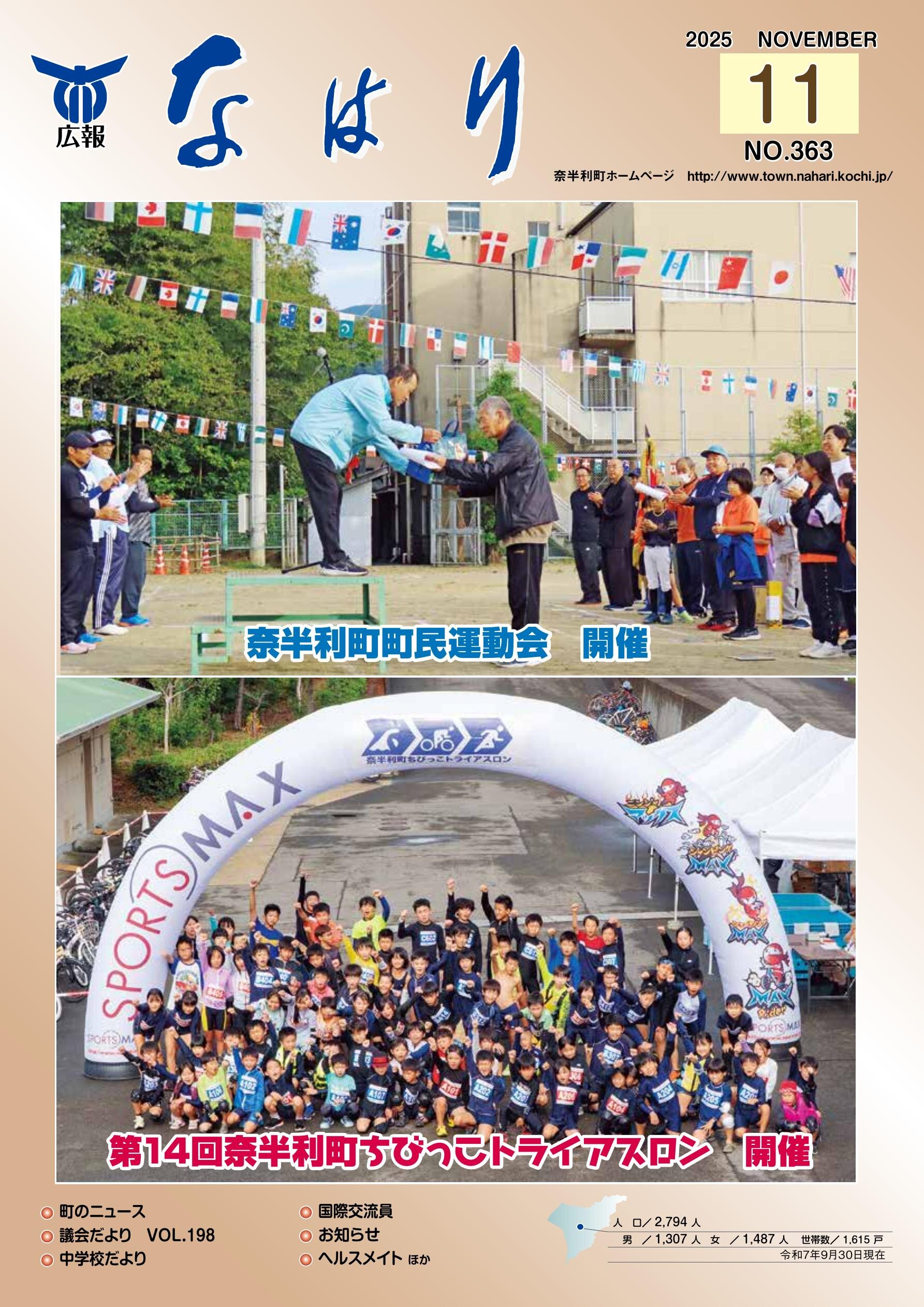 ■町のニュース ・奈半利町 町民運動会 開催 ・奈半利町定住促進奨励金のご案内 ・令和7年度敬老会 開催 ・高知県