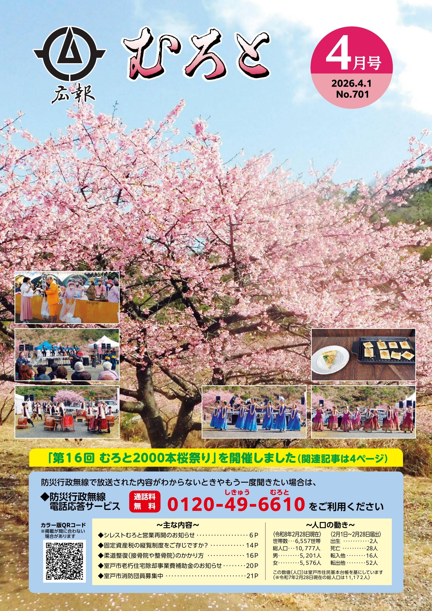 ■わが家のたからっ子/いさなっこ通信 ■市長の部屋/企業版ふるさと納税 ■第16回むろと2000本桜祭り開催 ■令和