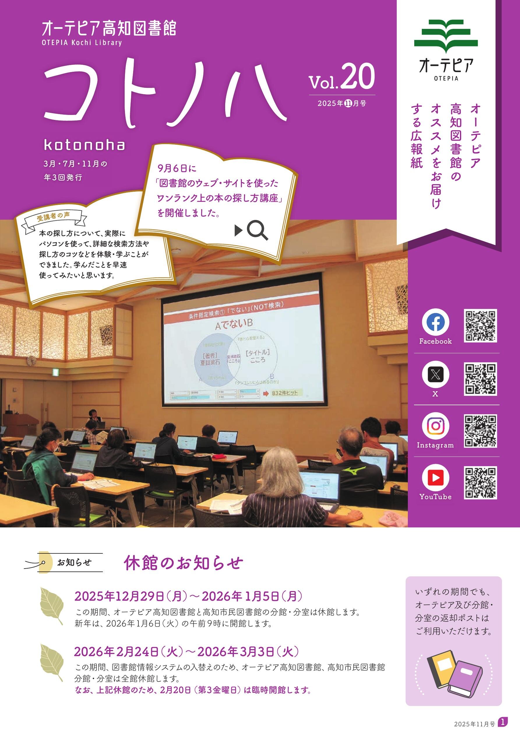 オーテピア高知図書館のオススメをお届けする広報紙 3月・7月・11月の年3回発行 <2025年11月~2026年2