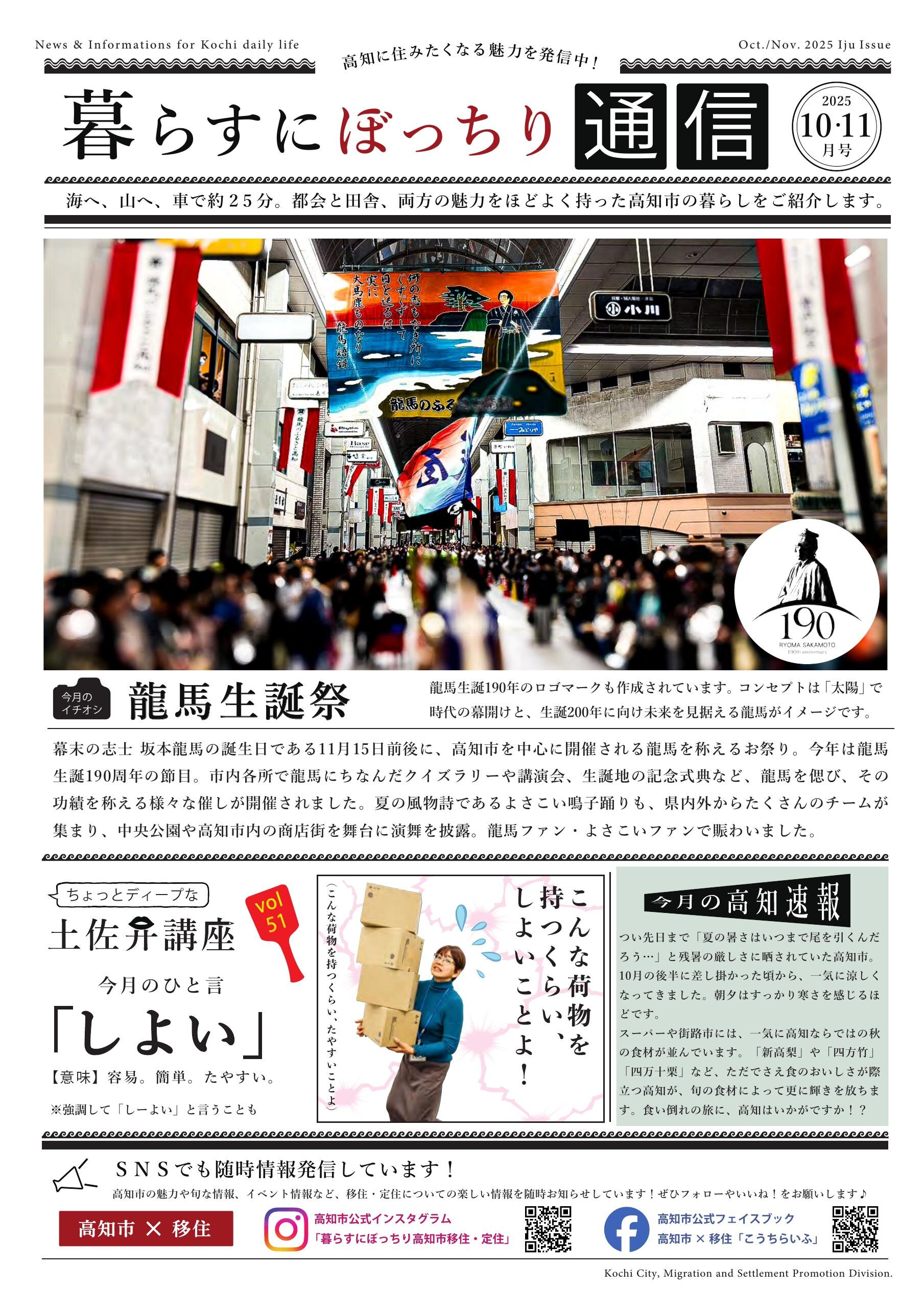 海へ、山へ、車で約25分。都会と田舎、両方の魅力を ほどよく持った高知市の暮らしをご紹介します。 ■【今月のイチオシ】
